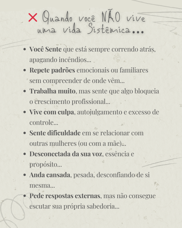 Chamamos de Mulher Sistêmica aquela que escolhe viver em alinhamento com sua história, sua verdade e o fluxo da vida.