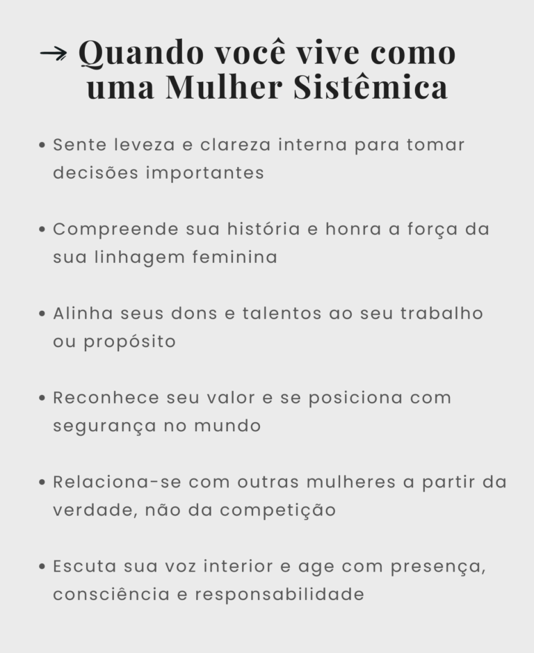 Mulher Sistêmica é aquela que escolhe viver em alinhamento com sua história, sua verdade e o fluxo da vida.